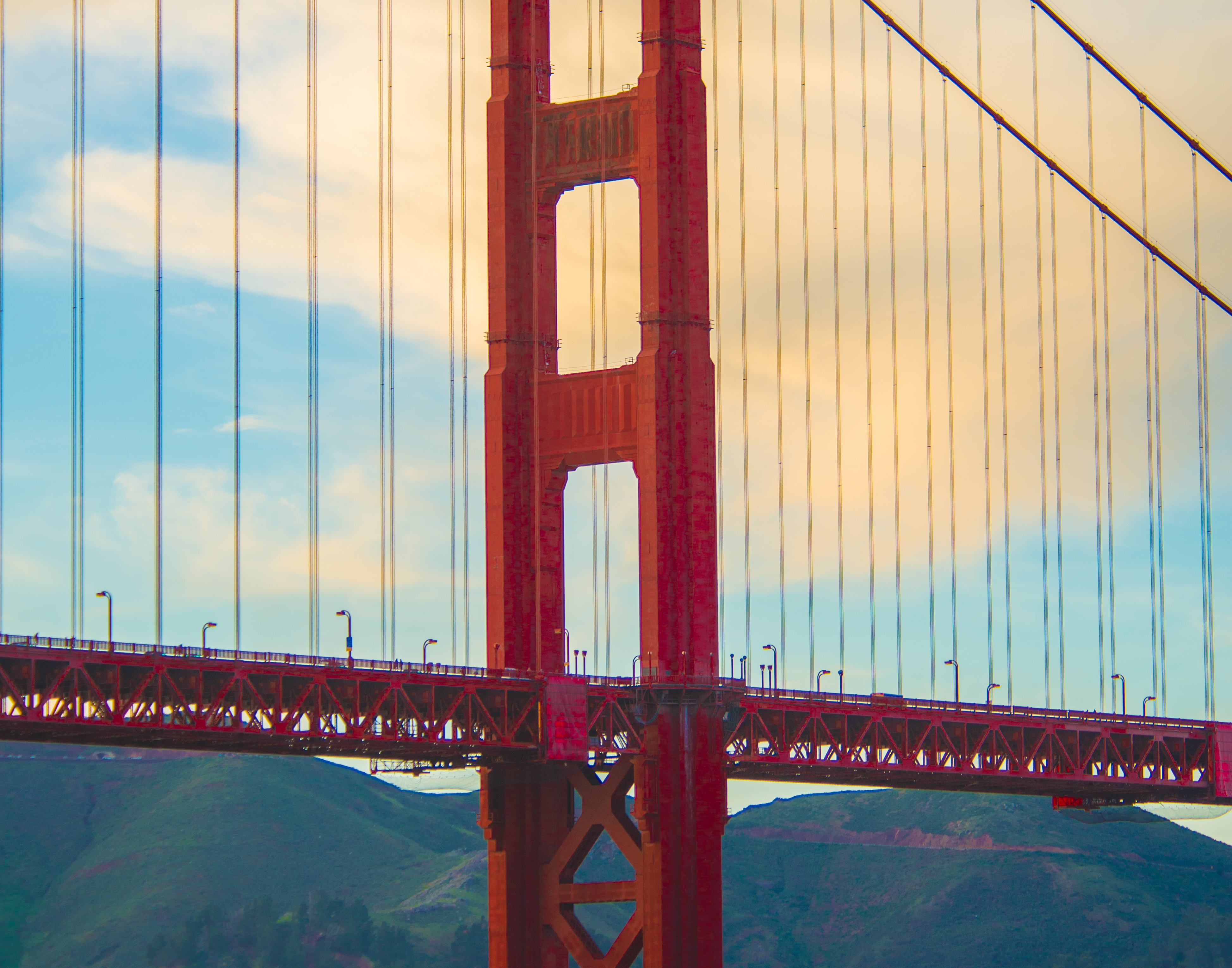 San Francisco's Golden Gate Bridge stands as an iconic entryway to the San Francisco Bay Area. Opened in 1937, it's ranked 5th on the list of America's Favorite Architecture. The color, known as "International Orange," was selected for its visibility in fog.